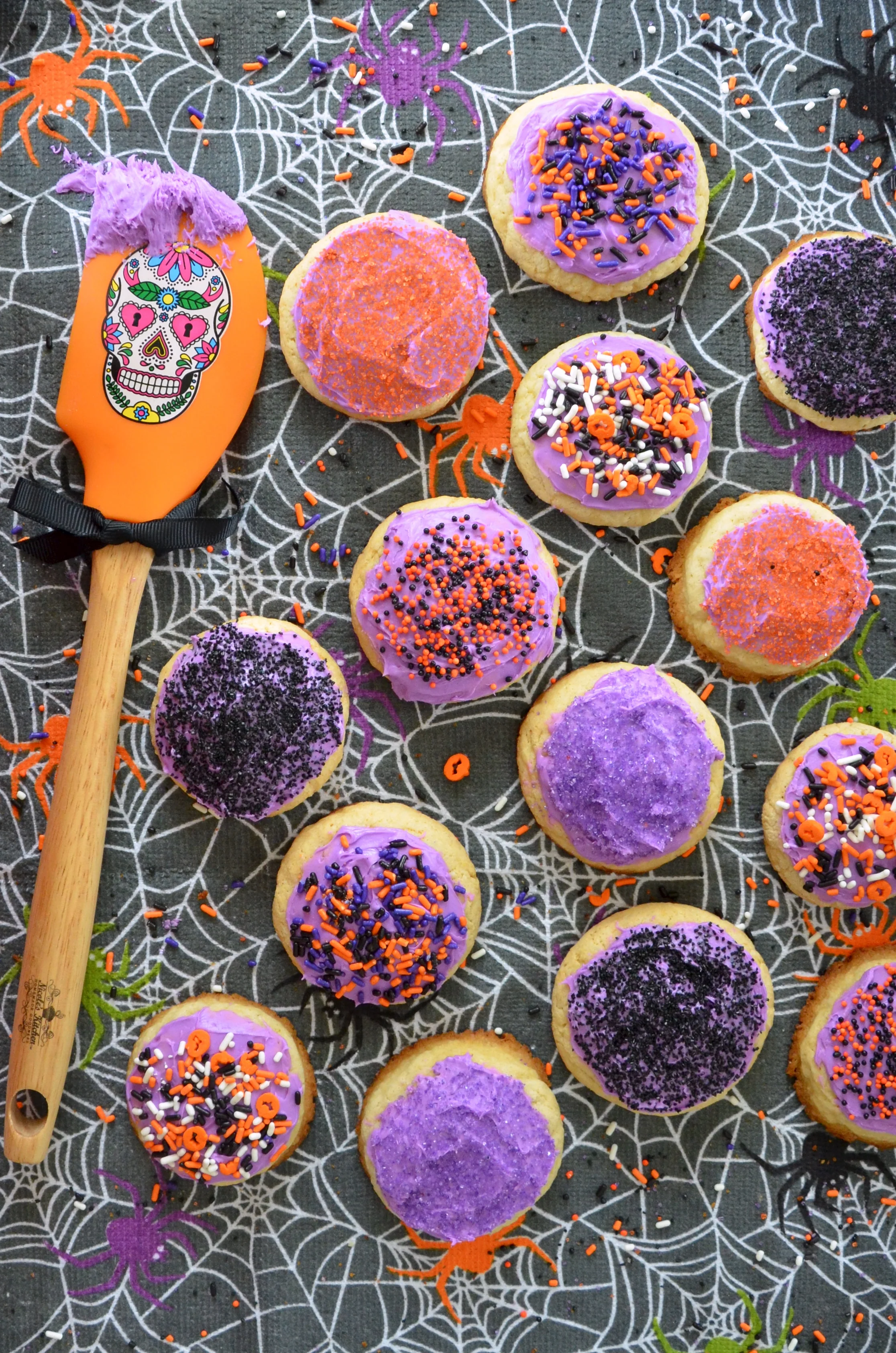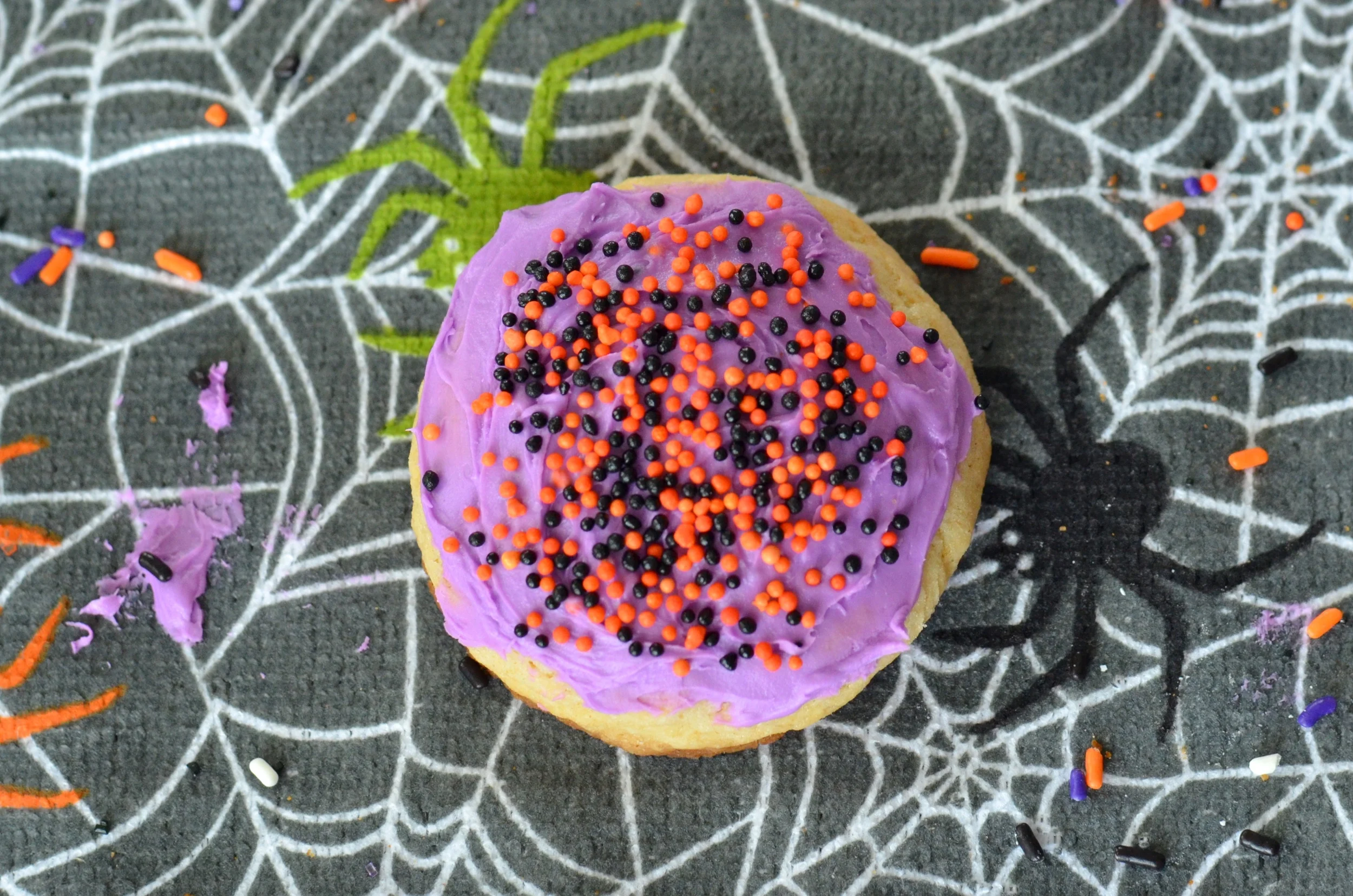 Last but not least, the best part - FROSTING AND SPRINKLES! I used Pillsbury Funfetti frosting and Wilton halloween sprinkles. Use a small spatula to spread about 1-2 tablespoons of frosting on each cookie. FInally, add the sprinkles on top and your ready to dig in!