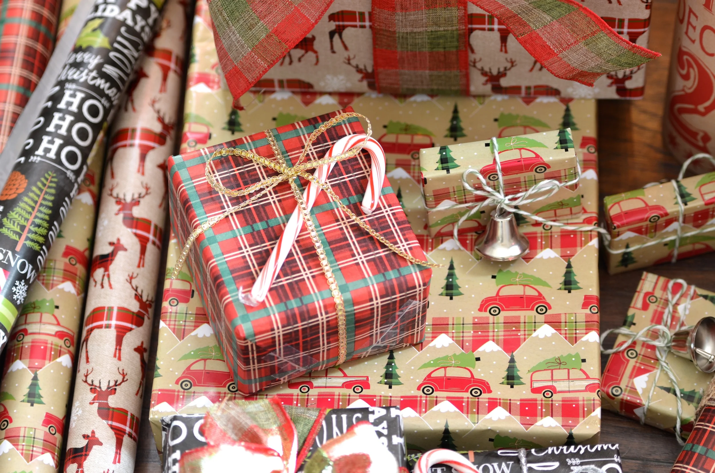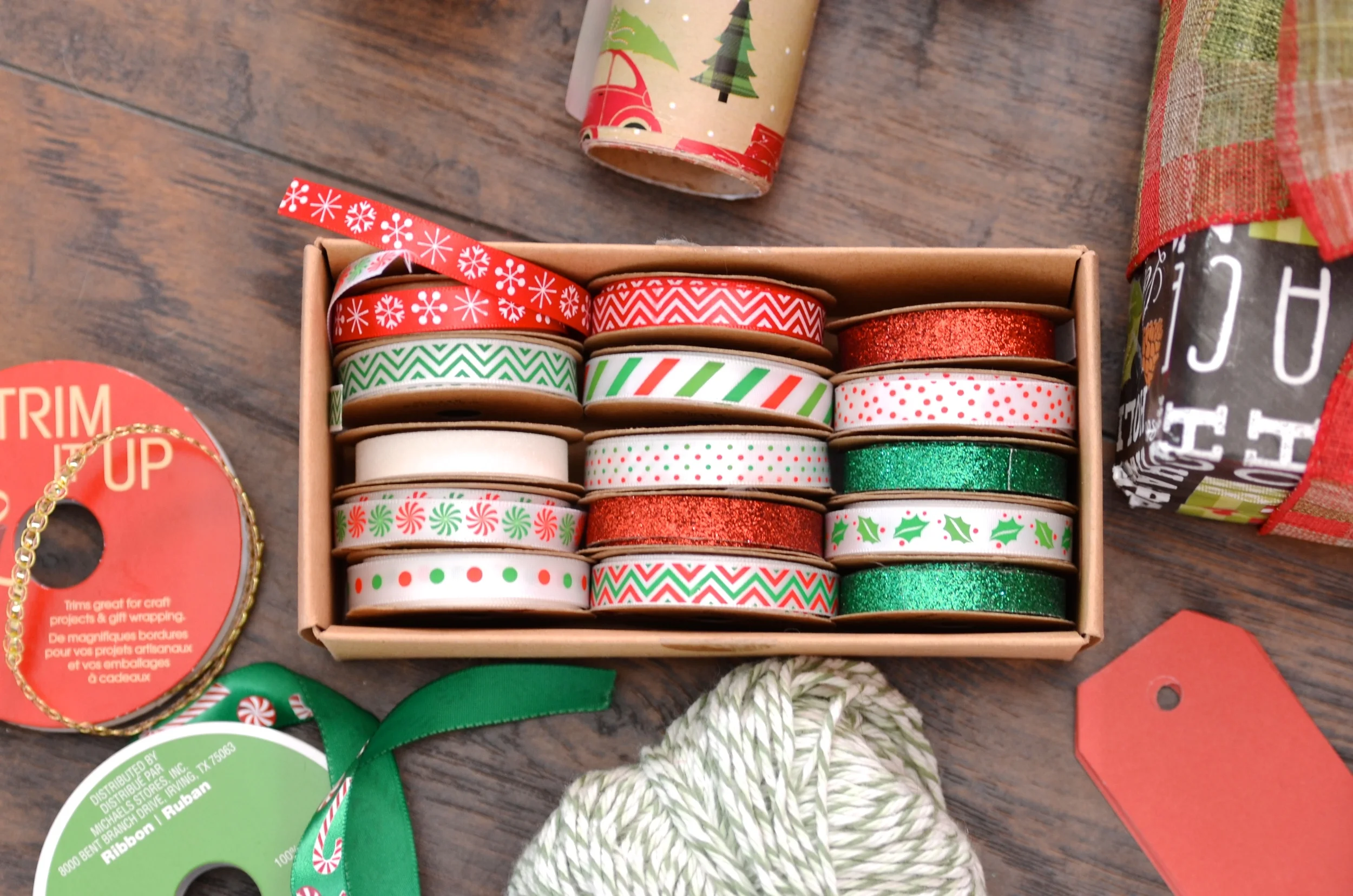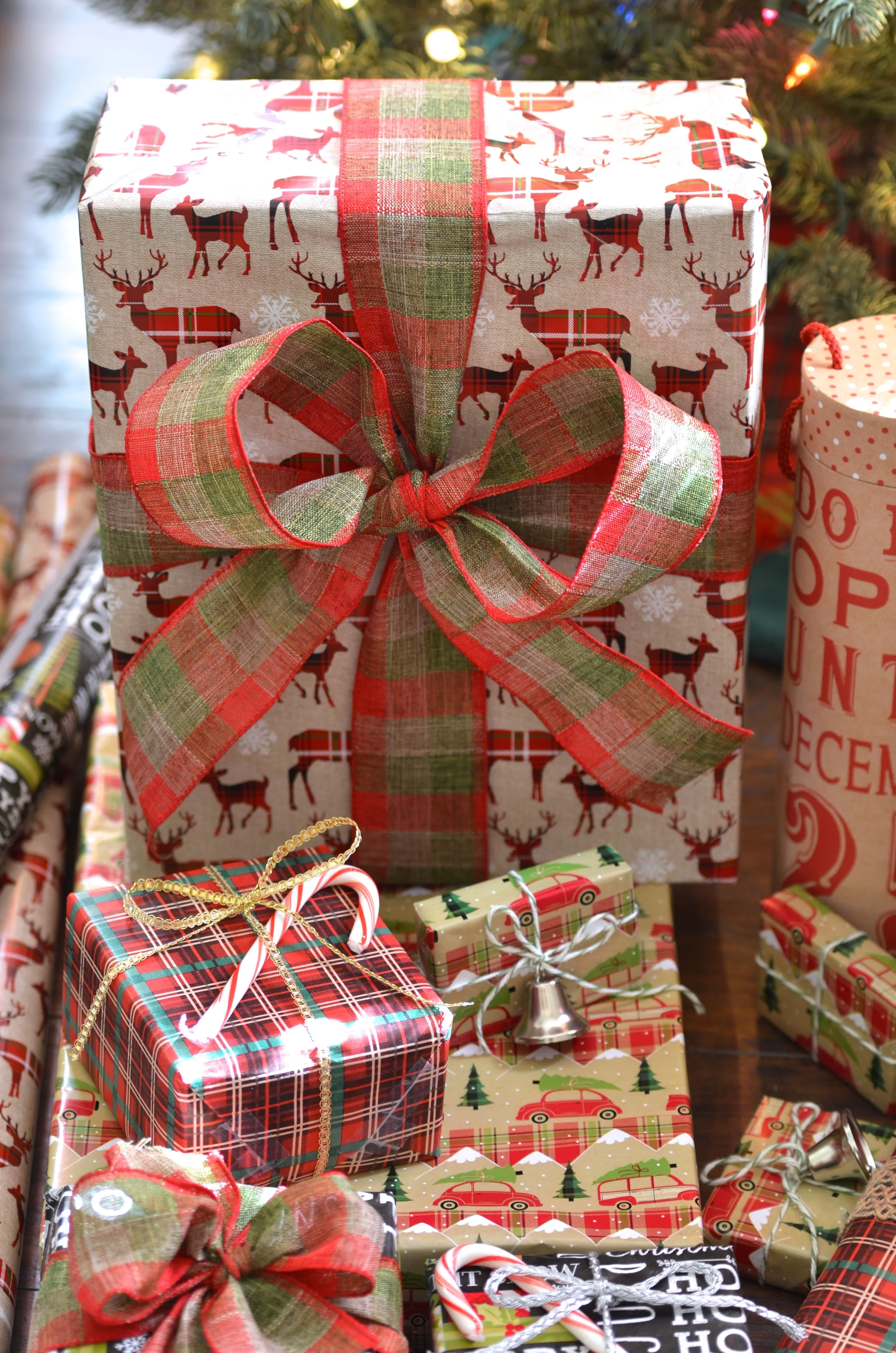 For my wrapping paper this year, I decided to go with a few patterns that have a vintage feel to them. The plaid patterned paper and wine bags/wine cylinder box are all from Christmas Tree Shops and the other three rolls of wrapping paper are from Michael's. I definitely slipped out an excited squeal when I saw the plaid reindeer and the cars with Christmas trees on tops - seriously how cute are they?! All of the ribbon and gift tag accessories are from Michael's, as well.
