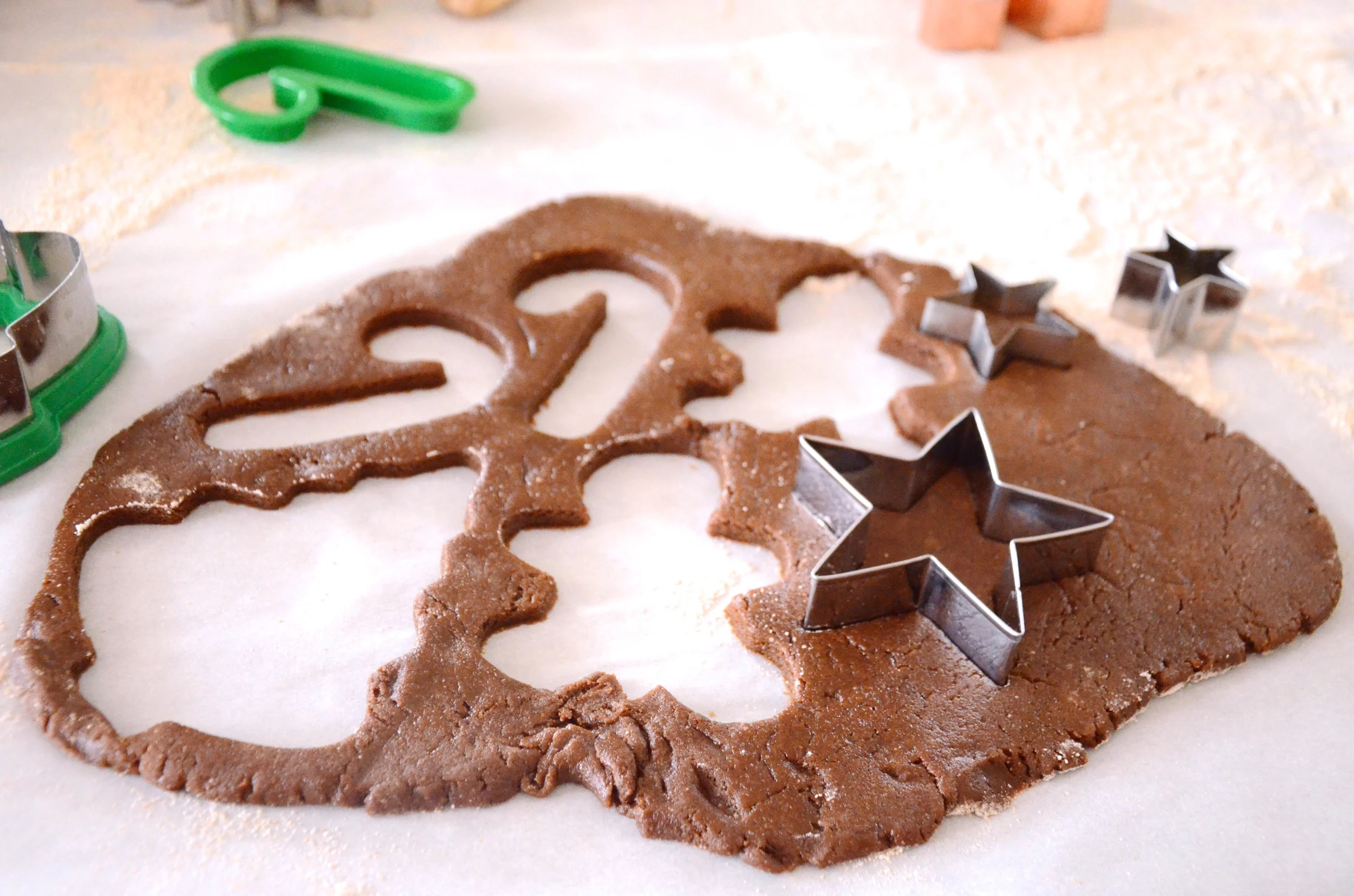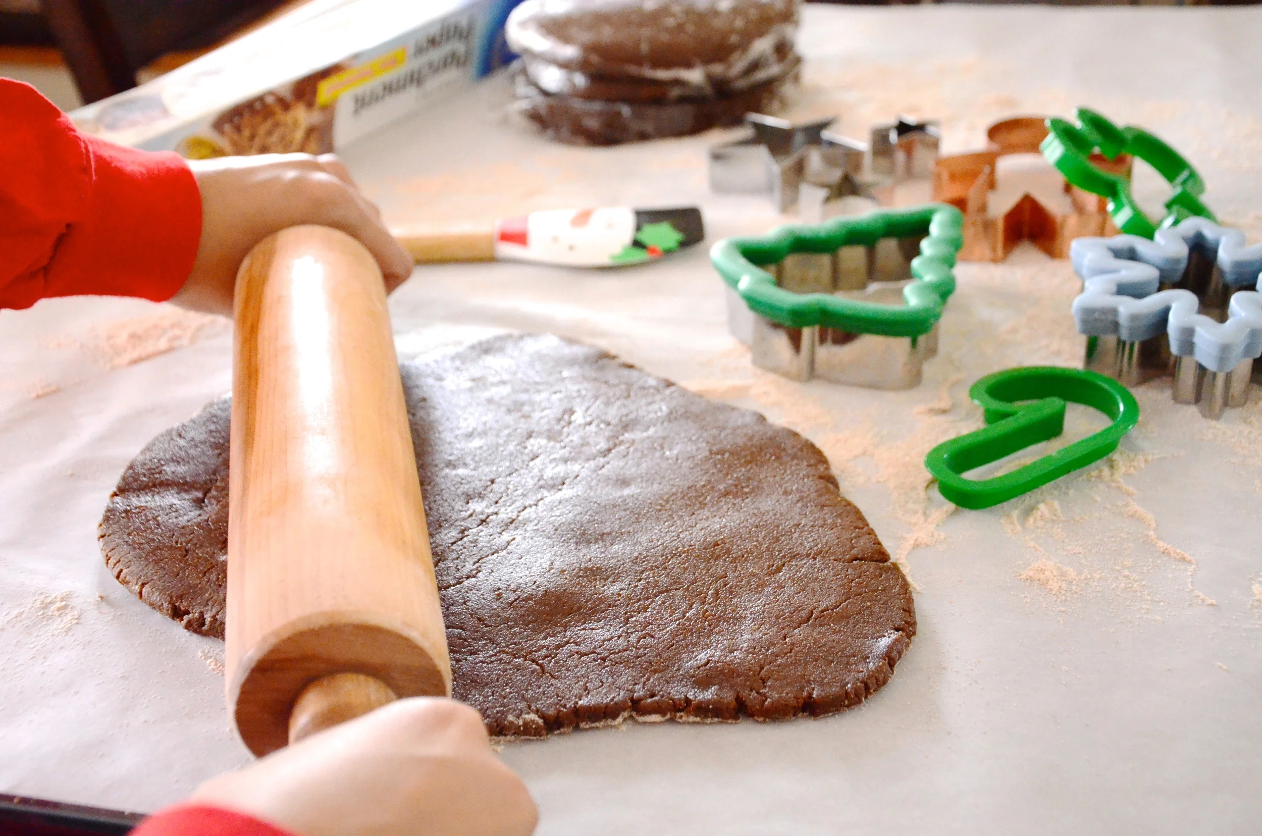 Begin by mixing together the wet ingredients (butter and vegetable shortening) in a high-speed mixer - I use a Kitchen Aid. Beat in the egg and molasses. In a separate bowl, mix together all of the dry ingredients (flour, baking powder, cinnamon, ginger, salt, cloves, allspice, and light brown sugar). Once all of the dry ingredients are mixed well, add them to the mixer, a few tablespoons at a time, with the wet ingredients. Knead until the dough becomes thick and uniform. Separate the dough into four flat circles and cover them with plastic wrap. I made the dough at night and decorated the next morning - this allowed it to have enough time to set overnight in the refrigerator. If you are making the dough the same day you plan on decorating, allow it 2-3 hours to set beforehand.