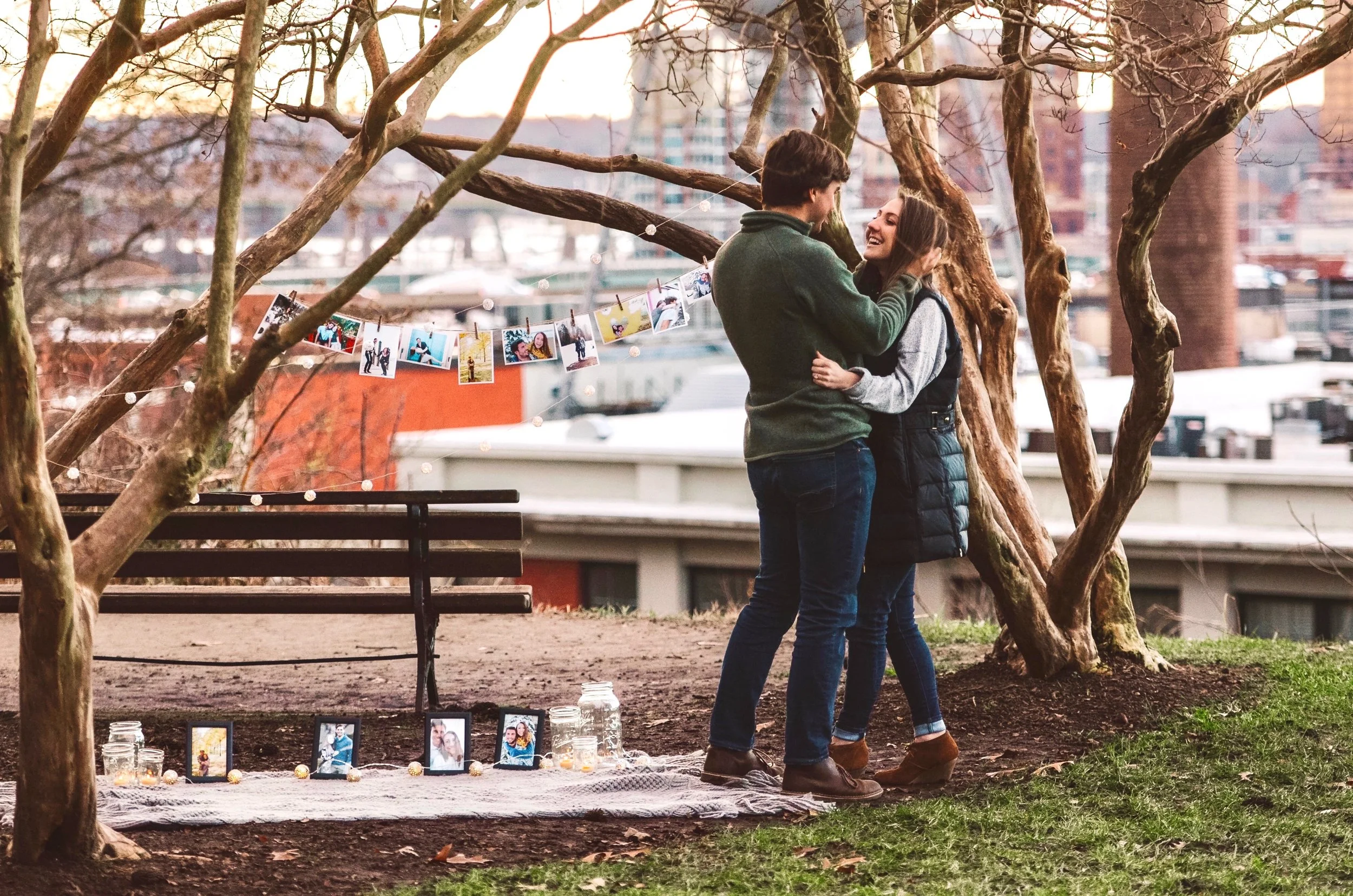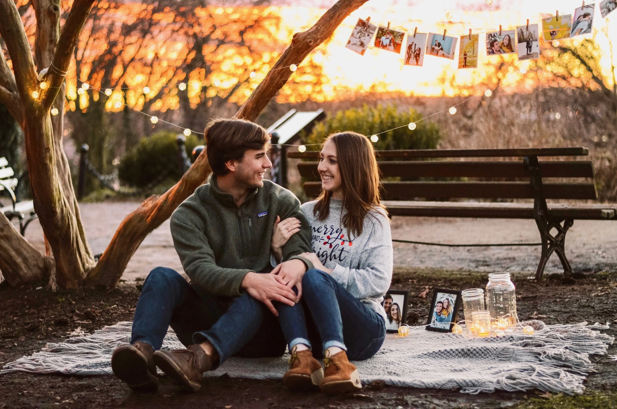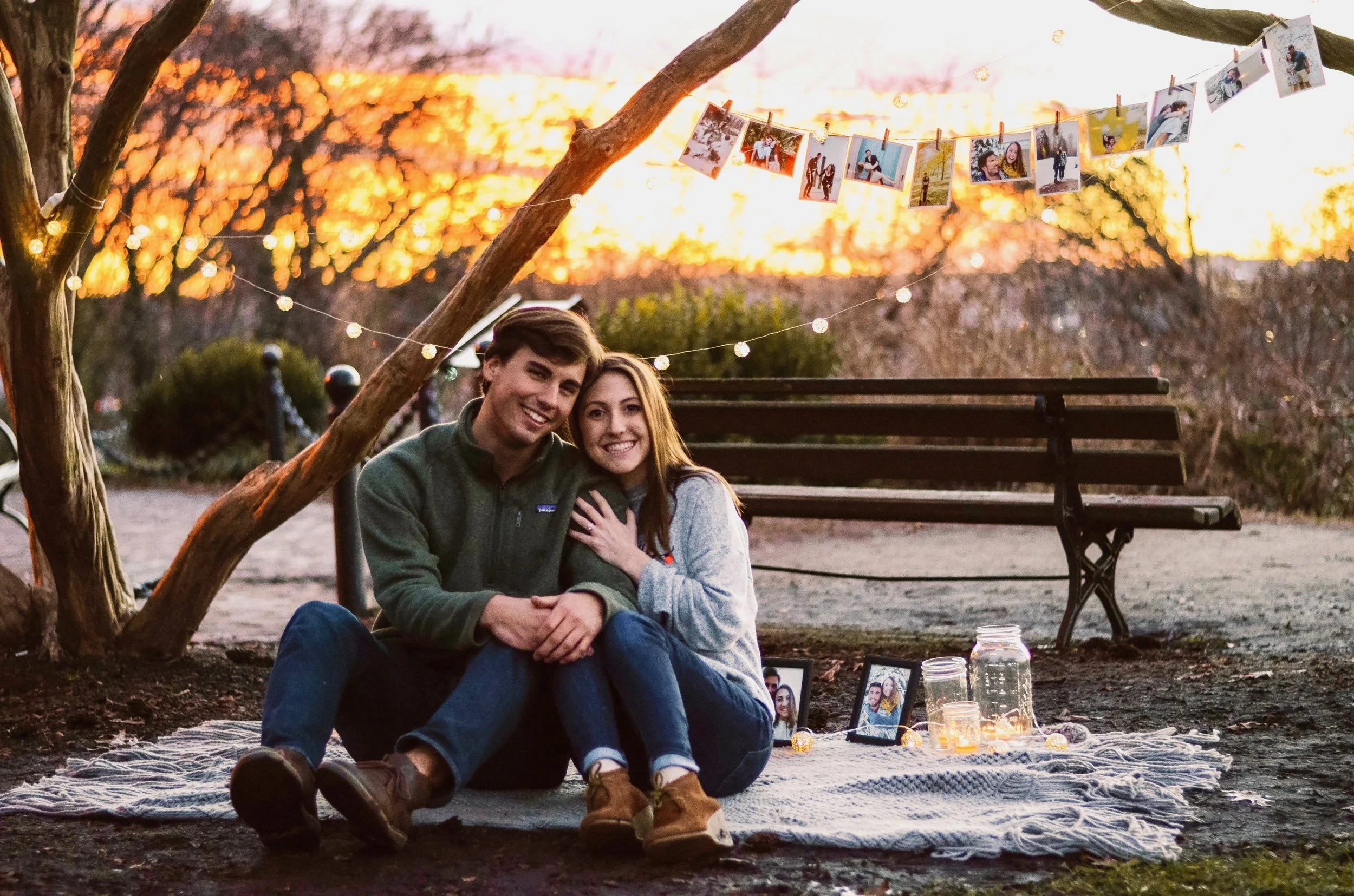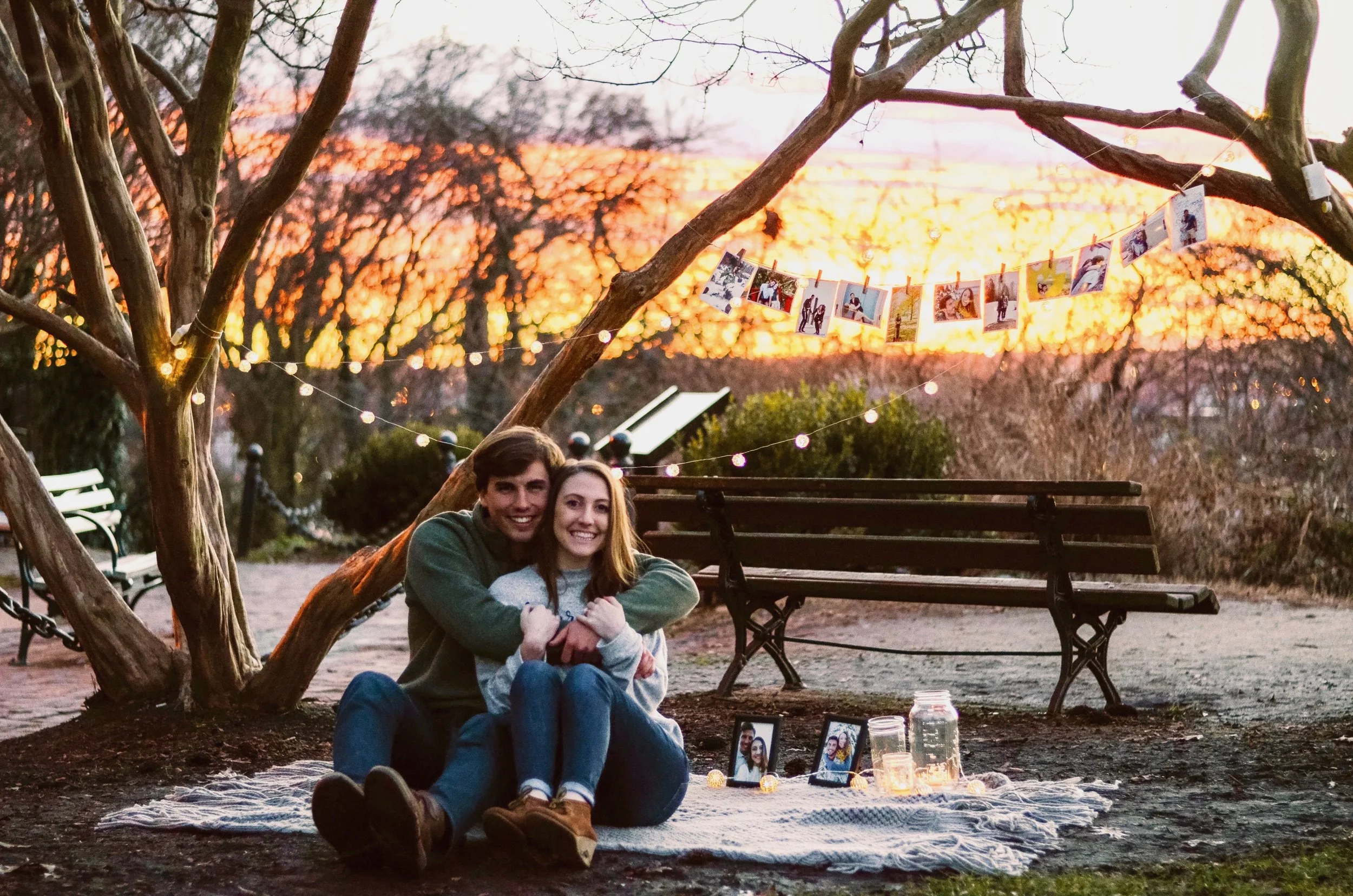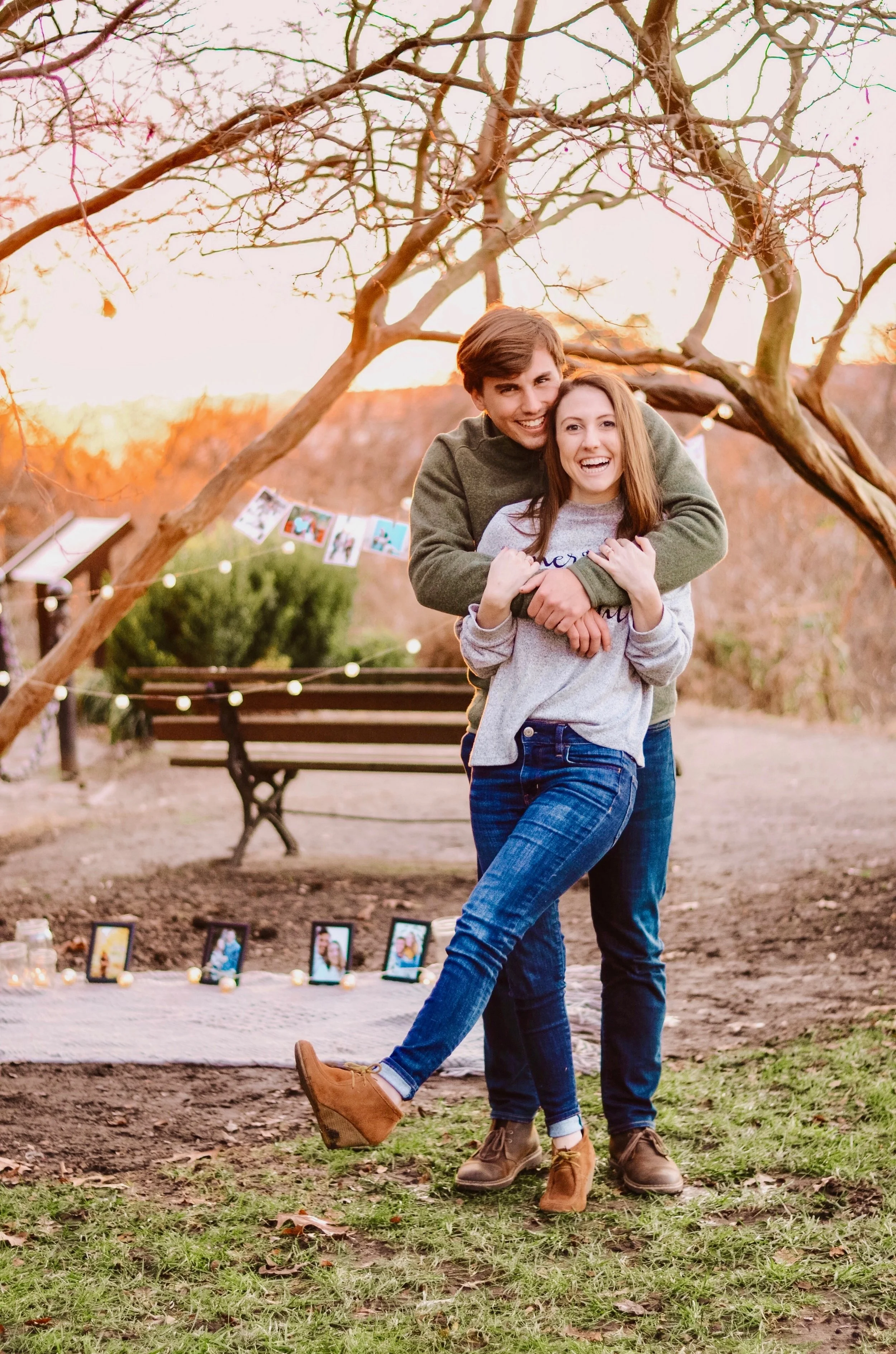 Austin and I drove up to Richmond, VA for the day where he would eventually propose to his soulmate. Emily was already there visiting her friend, Erica, and had no idea that the proposal would be happening… or that Austin was even in the same city as her! P.S. Erica is the real MVP for helping us make this happen!! Austin chose the Church Hill Overlook as the spot for the magic to happen. It was secluded, romantic, and had a gorgeous view overlooking Richmond. The sun was beginning to set, which filled the sky with so many dreamy colors. Talk about a perfect winter evening at the most amazing spot!