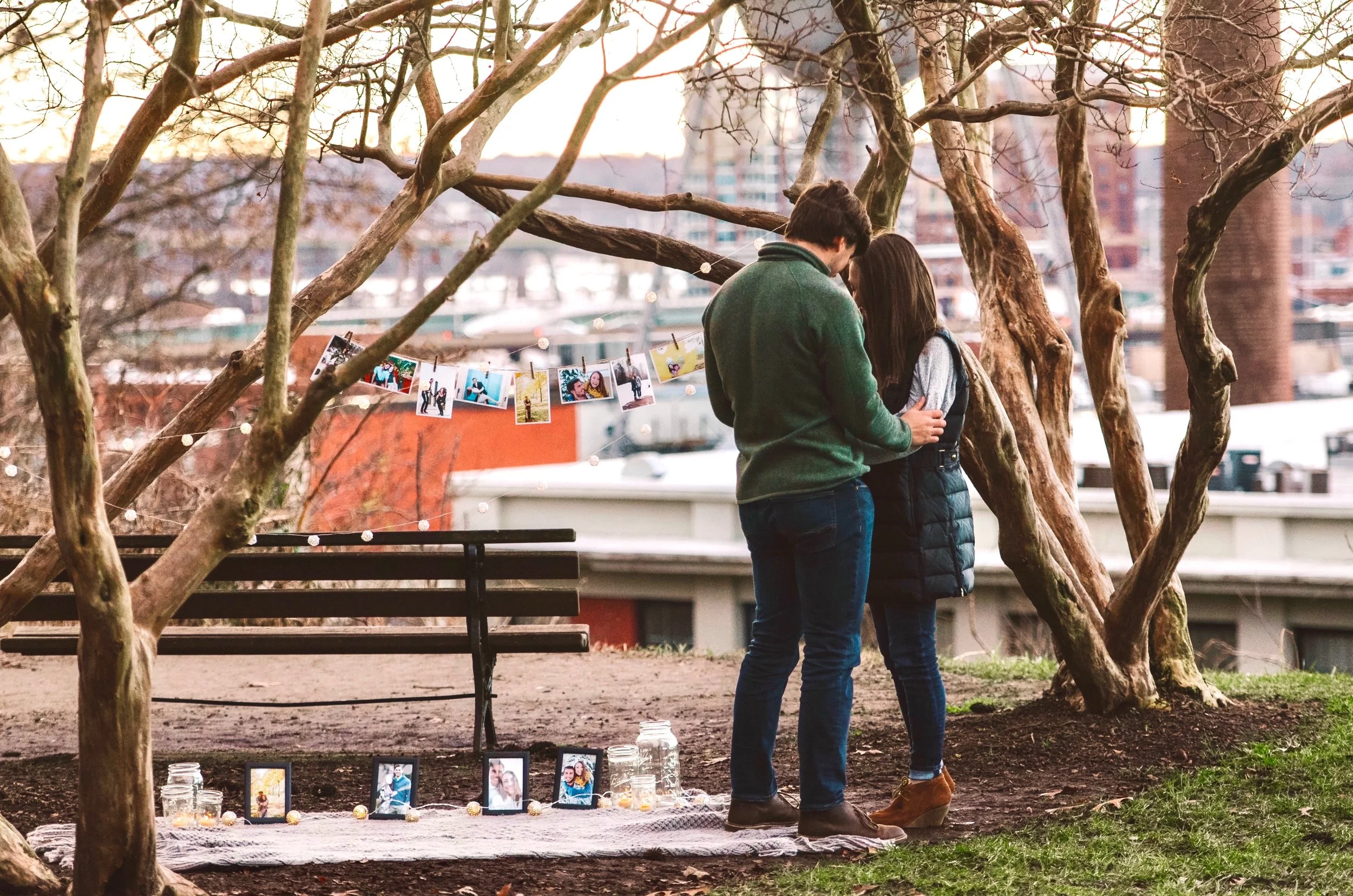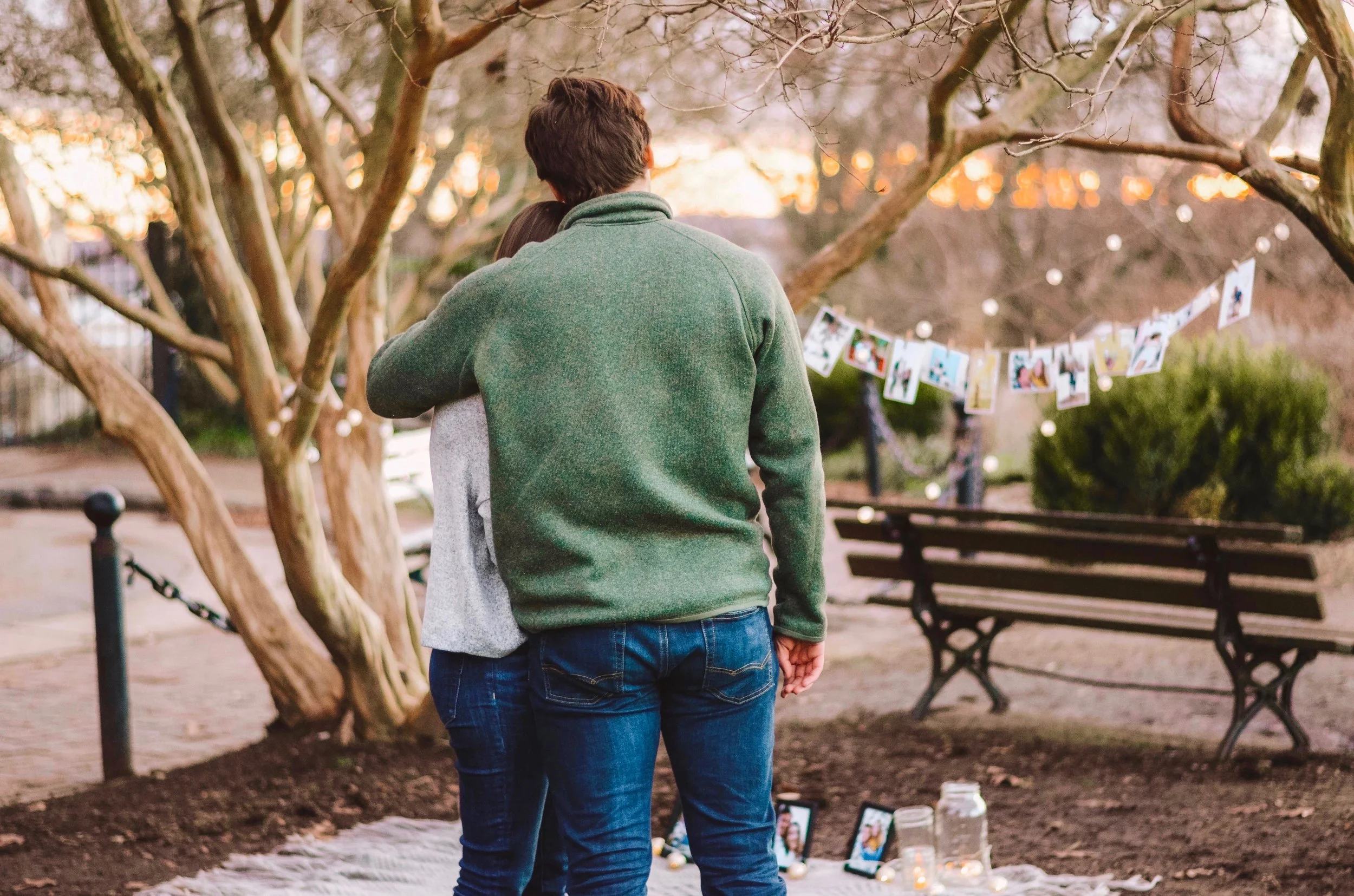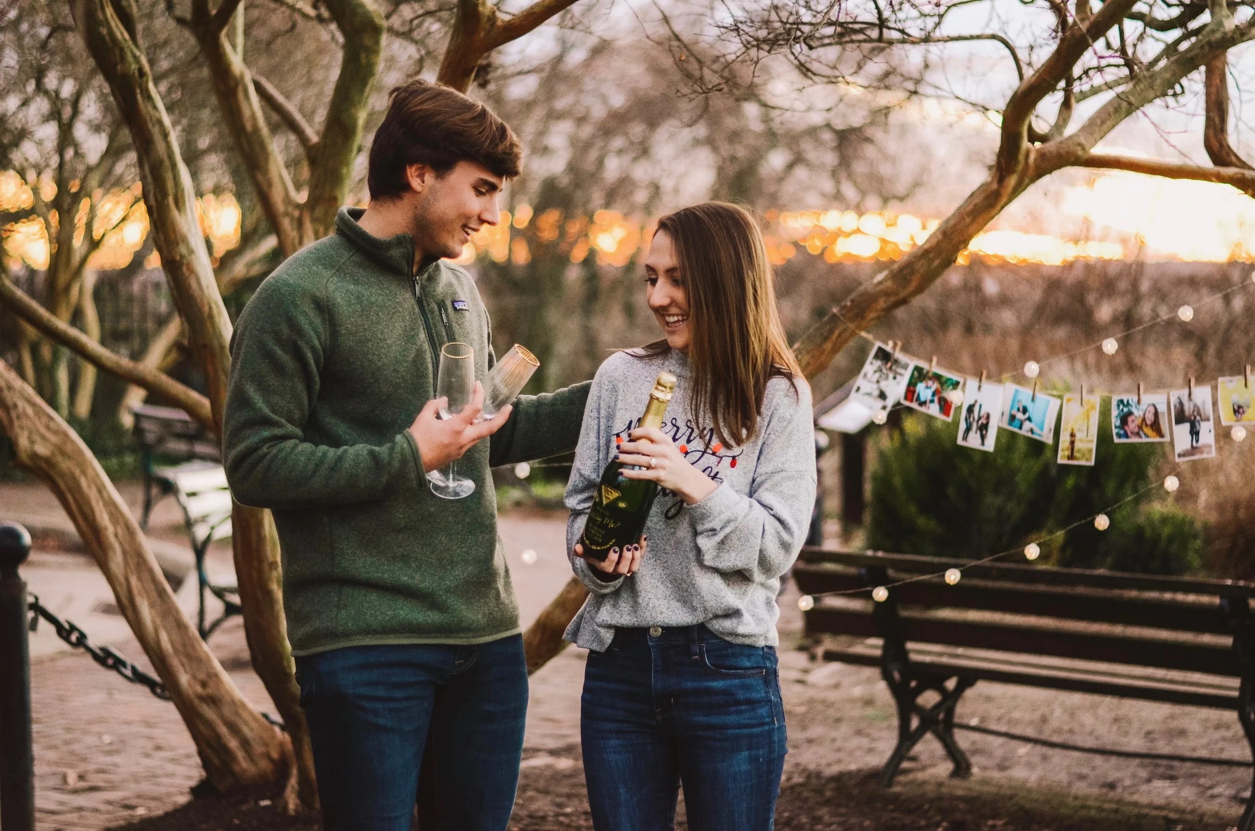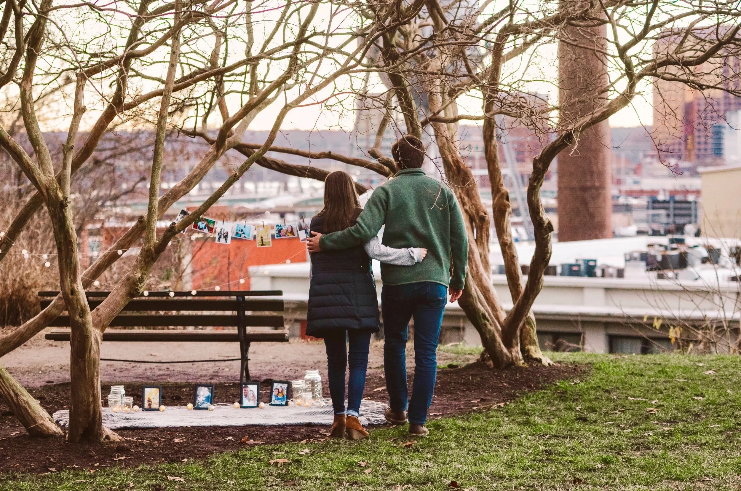 Austin and I drove up to Richmond, VA for the day where he would eventually propose to his soulmate. Emily was already there visiting her friend, Erica, and had no idea that the proposal would be happening… or that Austin was even in the same city as her! P.S. Erica is the real MVP for helping us make this happen!! Austin chose the Church Hill Overlook as the spot for the magic to happen. It was secluded, romantic, and had a gorgeous view overlooking Richmond. The sun was beginning to set, which filled the sky with so many dreamy colors. Talk about a perfect winter evening at the most amazing spot!