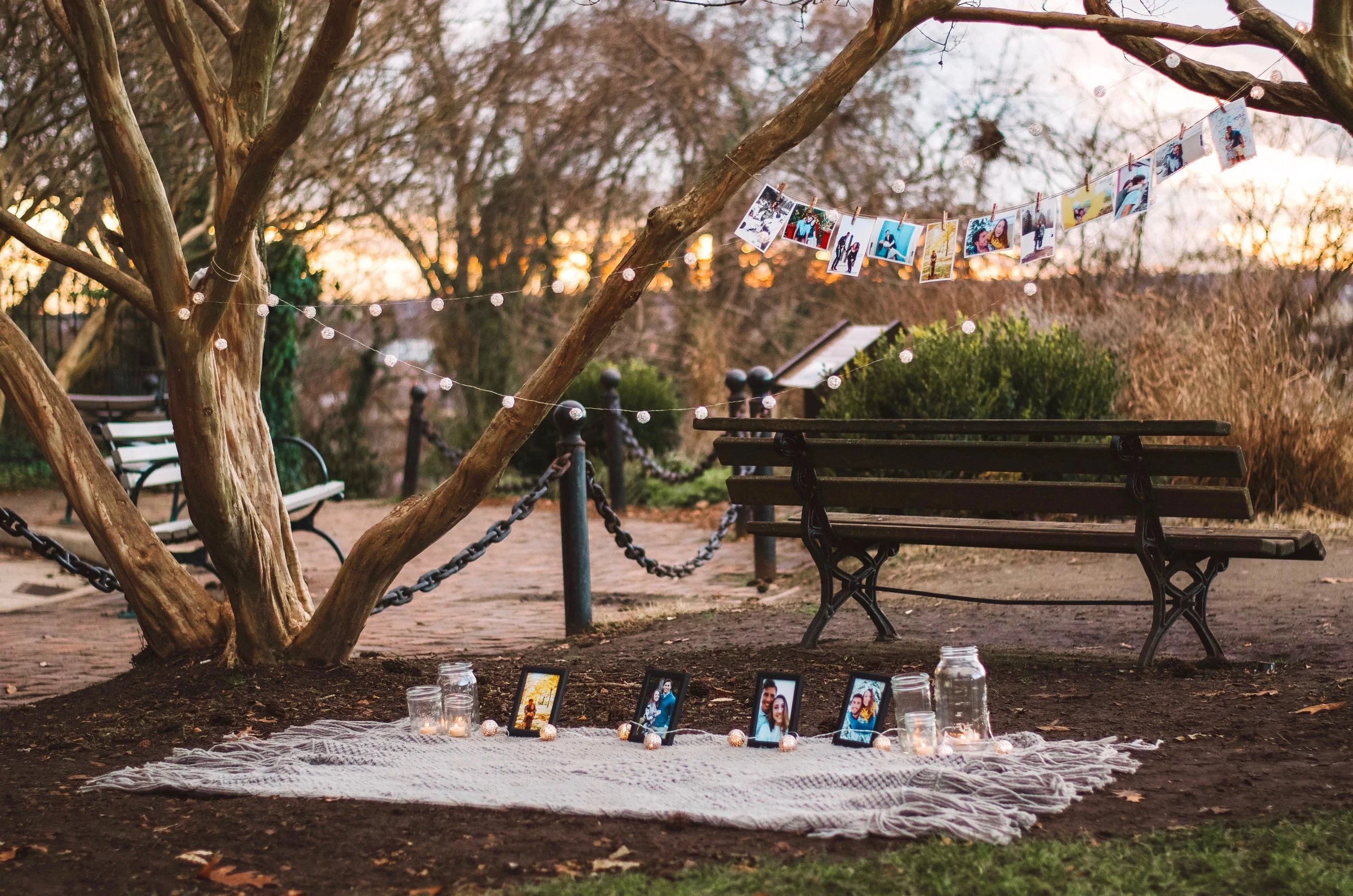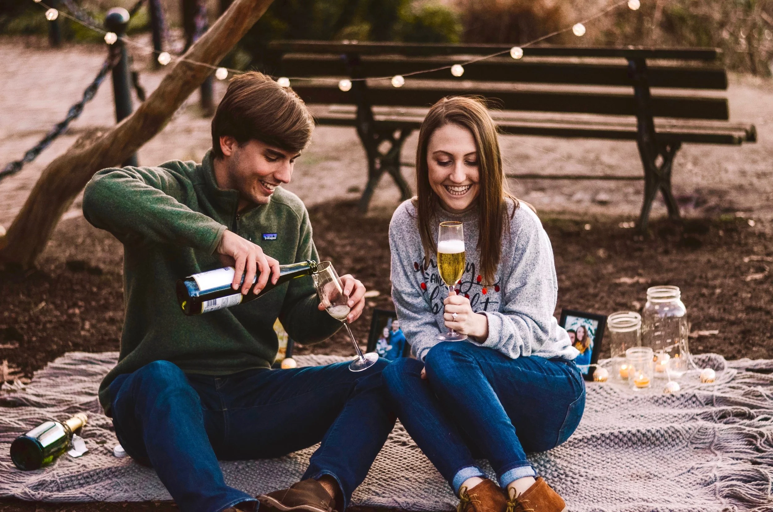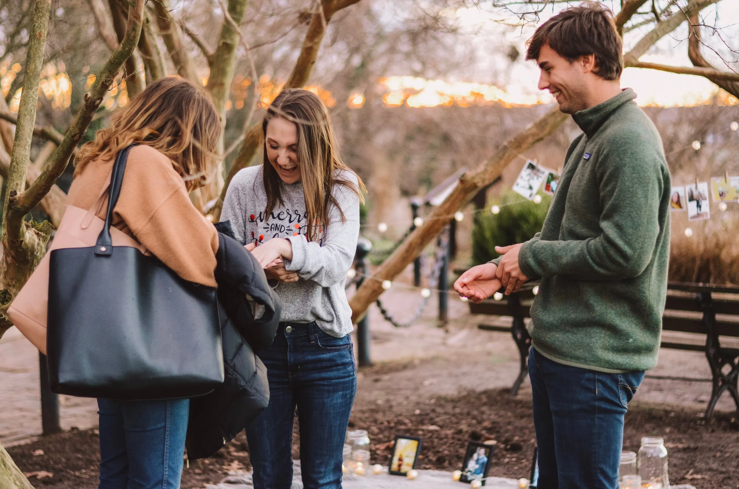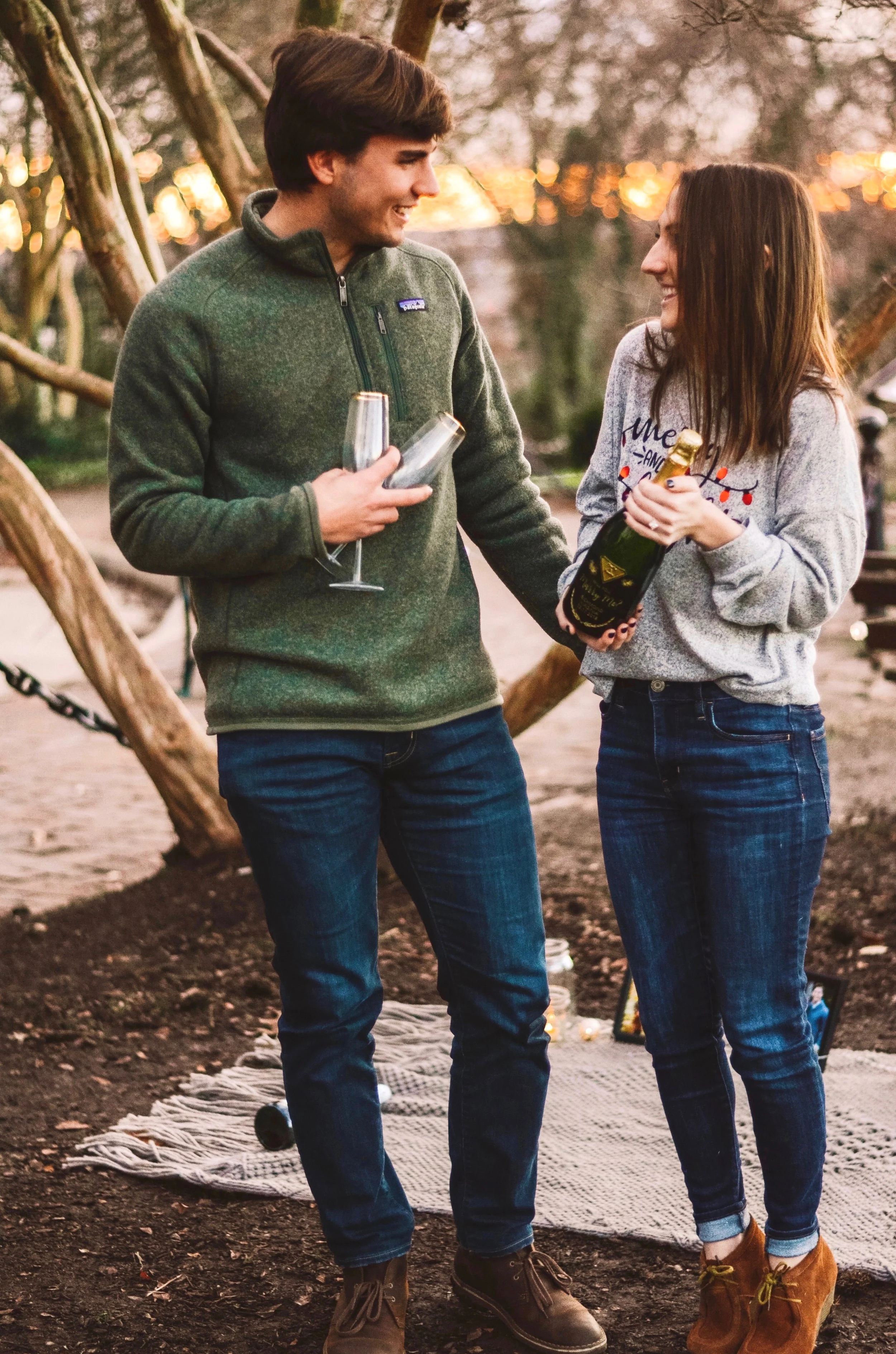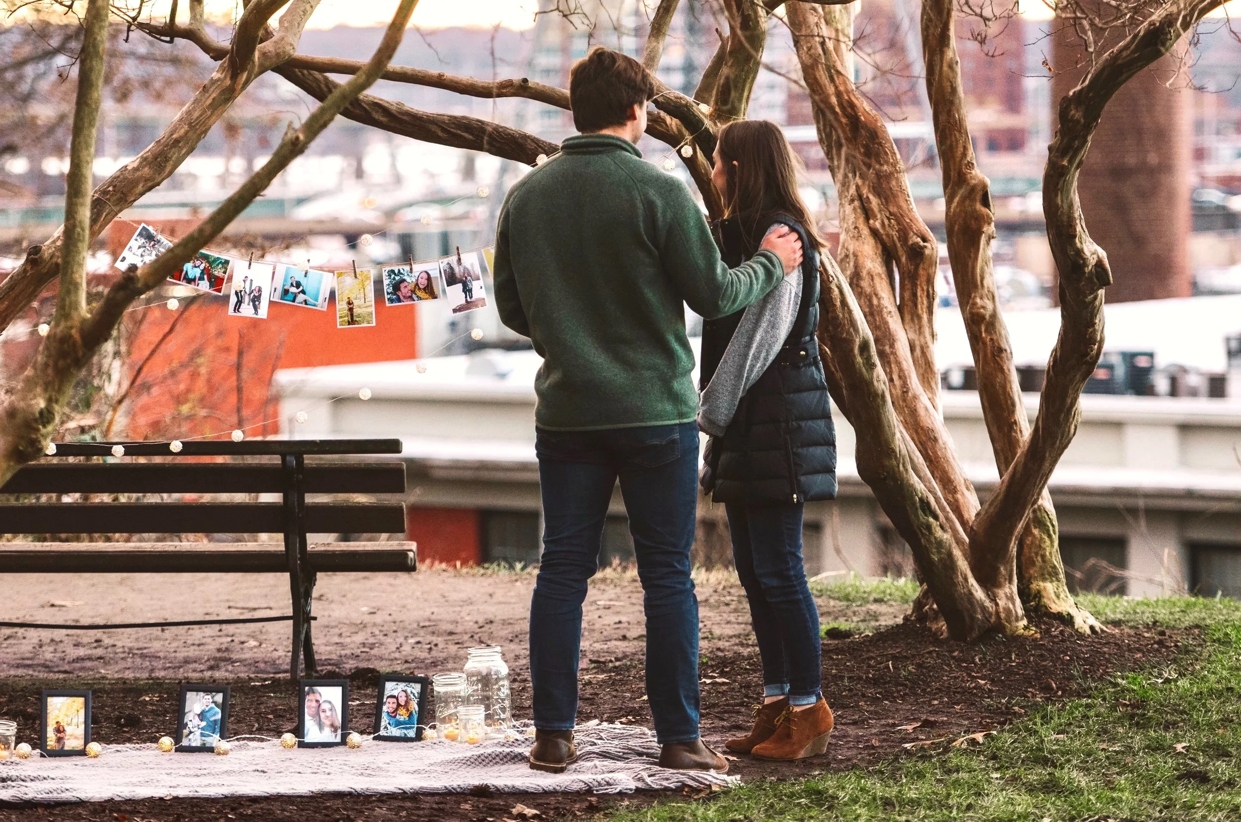 Austin and I drove up to Richmond, VA for the day where he would eventually propose to his soulmate. Emily was already there visiting her friend, Erica, and had no idea that the proposal would be happening… or that Austin was even in the same city as her! P.S. Erica is the real MVP for helping us make this happen!! Austin chose the Church Hill Overlook as the spot for the magic to happen. It was secluded, romantic, and had a gorgeous view overlooking Richmond. The sun was beginning to set, which filled the sky with so many dreamy colors. Talk about a perfect winter evening at the most amazing spot!