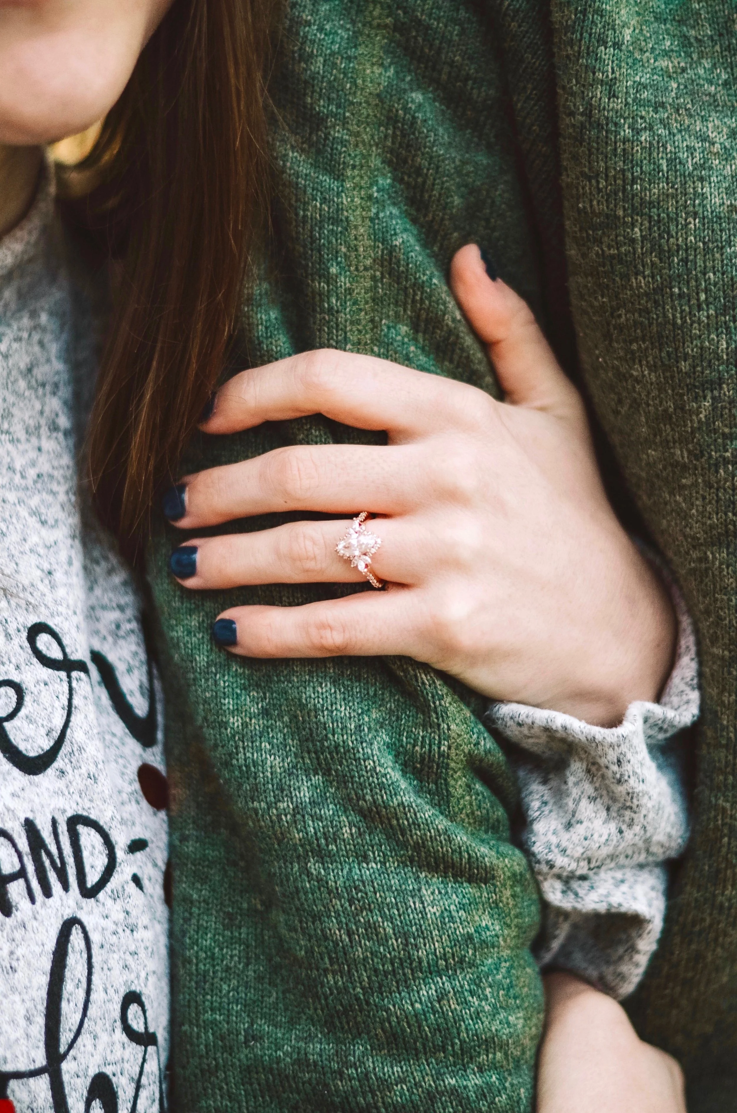 It was time. We got in place. I hid behind a set of bushes and Austin sat on the curb just around the corner from “the spot.” Emily thought she was just heading to watch the sunset with Erica after a day of Christmas shopping - but little did she know, her best friend was about to ask her to marry him! When Emily and Erica arrived, they began walking towards the outlook and Austin soon came into view. I just about lost it when I heard Emily yell, “Omg, what are you doing here? Did someone die?!” HAHA! As she got closer, Austin took her in close and lead her to his perfect proposal spot. They exchanged words, laughs, and excited squeals until he eventually got down on one knee and popped the question - and SHE SAID YES! And can we talk about her ring for a quick second… because holy amazingness! What a stunning beauty - it was absolutely made for her!