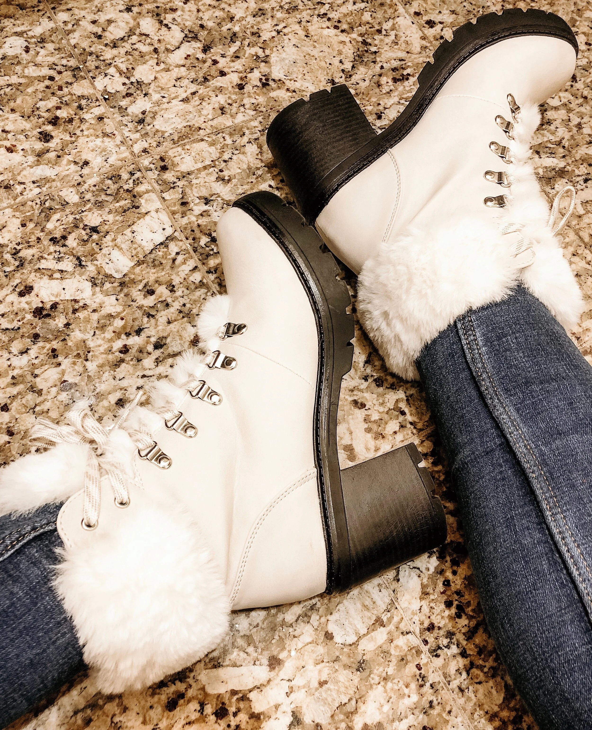 How amazing are these boots?! They’re from TJ Maxx and one of the warmest, coziest pair of boots I’ve ever owned. The inside is lined with faux fur so they are soooo warm! They have a small heel on them, but are still very comfortable to walk around in. I get tons of compliments any time I wear them and they will be a statement piece to add to any outfit. I couldn’t find the exact ones online, but linked a similar pair below!