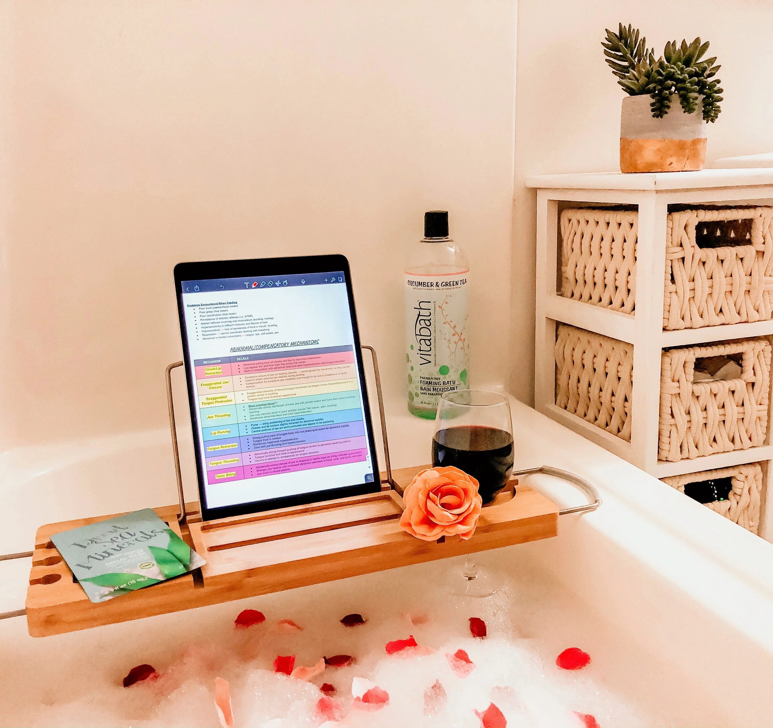 Speaking of self-care and super cozy bubble baths, this is another gift I received for Christmas and am totally in love with! This bamboo bathtub caddy has extendable sides to fit any tub and comes with divots for all sorts of things including a razor, loofa, soap, and even a wine glass (which is definitely my favorite part and included in every single one of my bubble baths). I also love that it has a stand for you to prop a book, iPad/tablet, or phone! I’ve been taking advantage of this feature by studying with my iPad while I take bubble baths - it’s the perfect way to be productive during self-care time! I can’t find the exact one online, but Amazon has a bunch of cute ones that are almost identical!