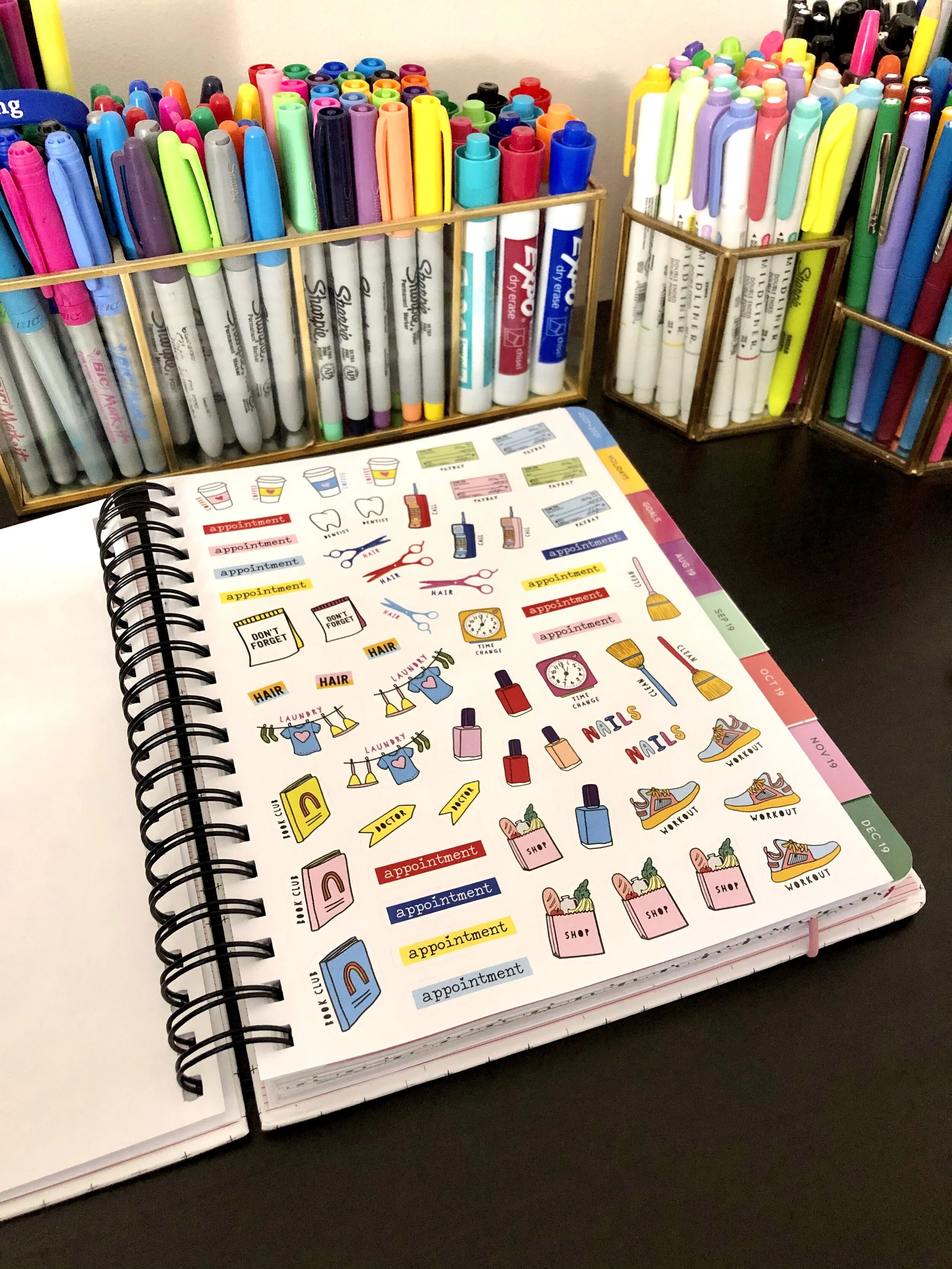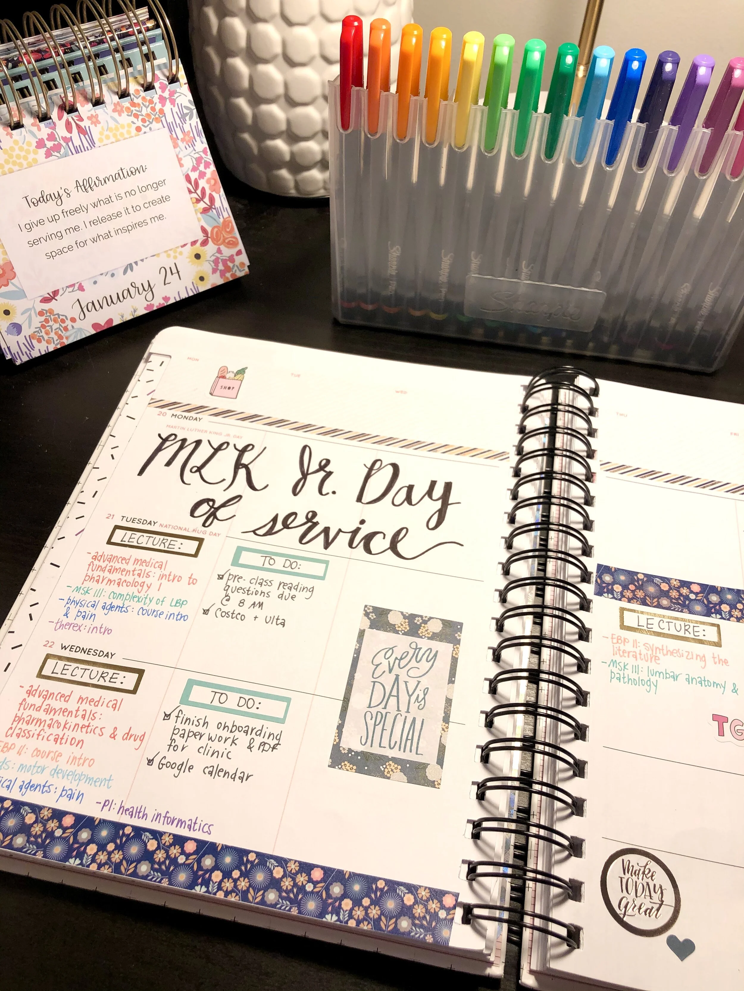 This planner stole my heart the moment I laid eyes on it. I have been using a Happy Planner for years, but wasn’t real thrilled or impressed with their new styles they just came out with for their 2020 planners. I was going to buy one on sale from Michael’s after Christmas because I needed to get one ASAP to plan out the new year and semester ahead, but really wasn’t in love with any options they had. I was at the mall and went into one of those random book/puzzle/calendar/game stores and decided to browse around to see what was in the store. I fell in love with this planner as soon as I saw it. It has a polaroid camera on the front and says ‘these are the days’ - we were meant for each other. It comes with multiple pages of stickers (1000+), washi tape, a storage pouch (perfect for storing writing utensils right inside of the planner), and two elastic bands (one for keeping the planner closed and the other for bookmarking your place). It also has “currently” pages to write down what you’re loving, fun holidays, creative challenges, inspiring quotes, artwork, birthday and note sections, weekly spreads, and monthly grids! I found it on Amazon and linked it below!!