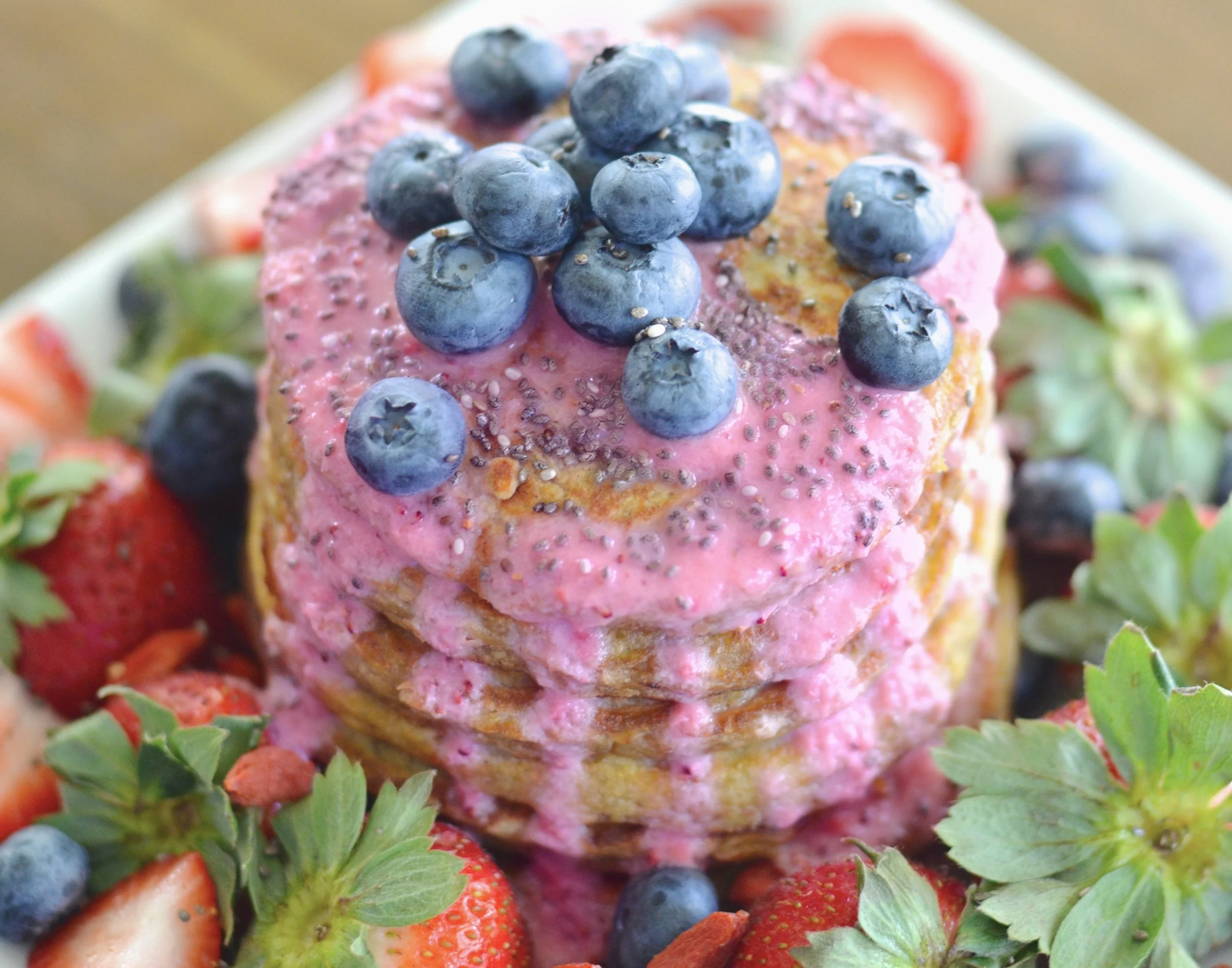 Heart Protein Pancakes with Almonds and Fresh Fruit