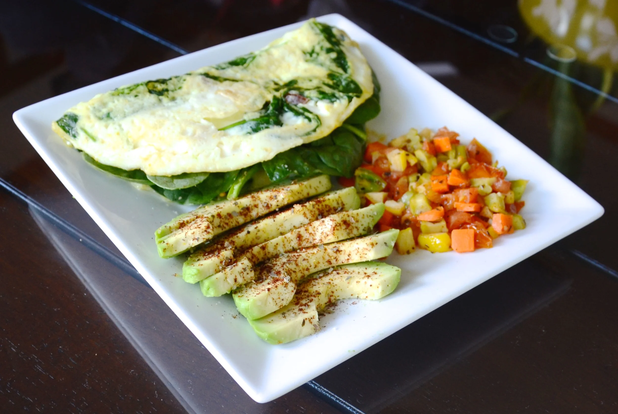 Spinach and Egg White Omelette with Avocado and Sauteed Veggies