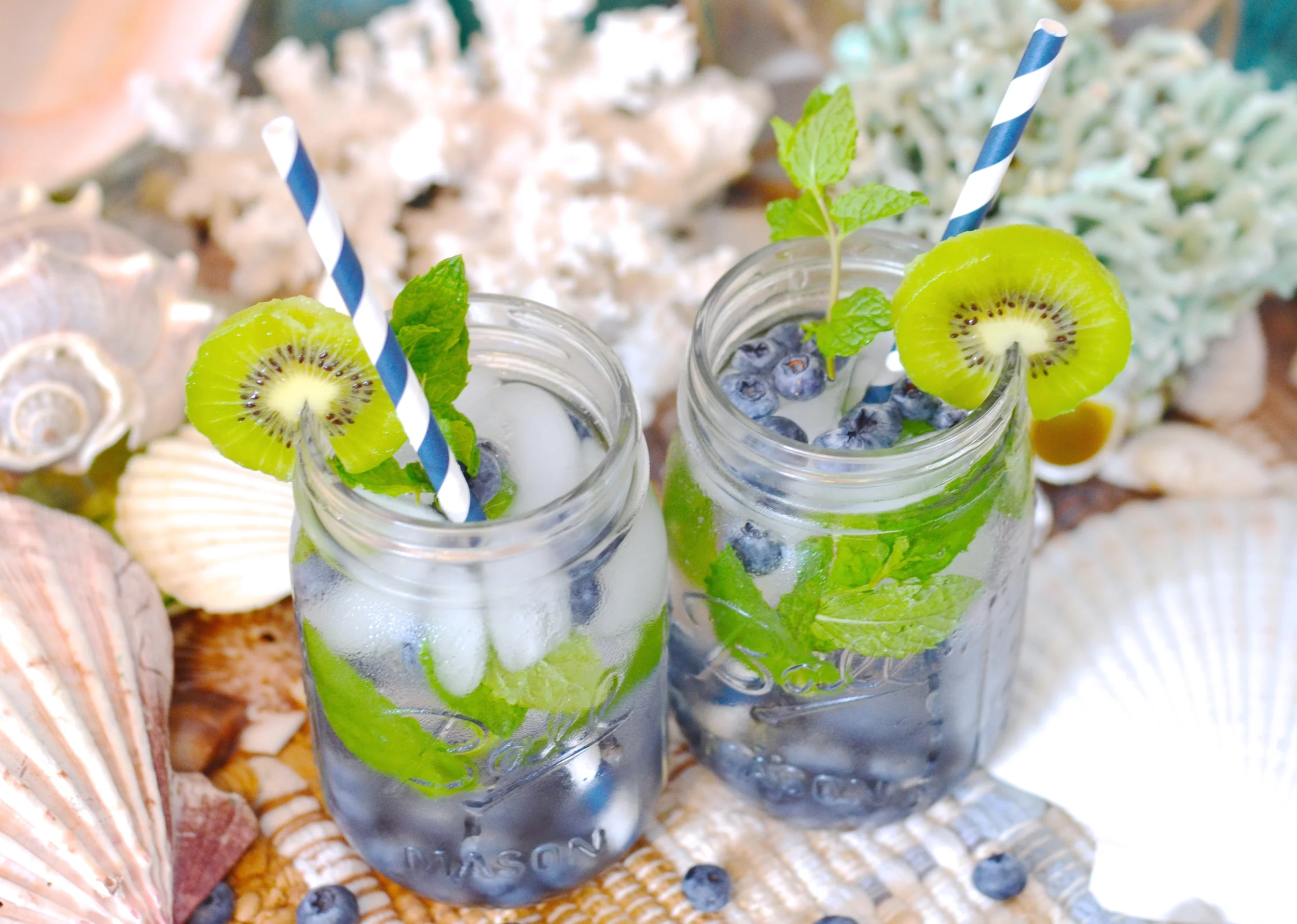 Blueberry, Kiwi, and Mint Infused Water with a Splash of Coconut Water